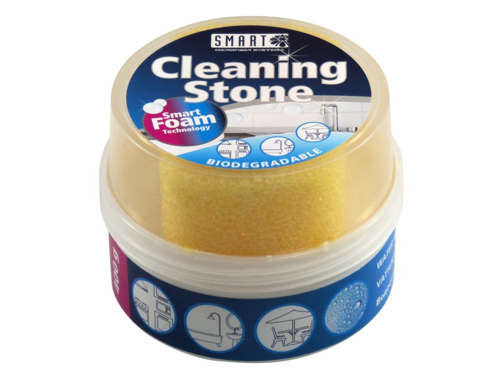 Použití: Lehce navlhčenou houbičkou přetřete čisticí kámen. Houbičku několikrát zmáčkněte, aby vytvořila čisticí pěnu. Poté vyčistěte silně znečištěné povrchy a setřete vlhkým hadříkem nebo opláchněte vodou… Hotovo!