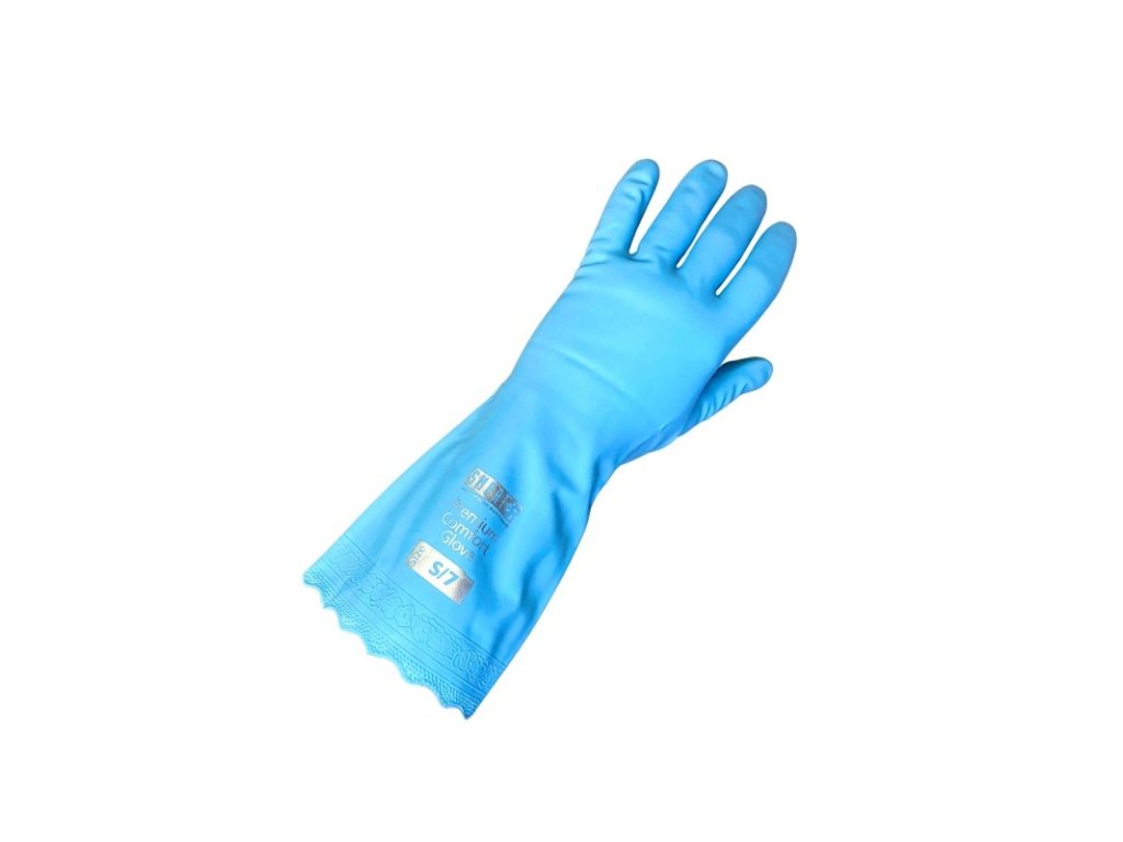 Komfortní a měkká gumová rukavice z latexu. Vnitřní podšívka z česané bavlny zajišťuje příjemný pocit při nošení. Gumové rukavice jsou ideální pro úklid, mytí nádobí, lehké zahradničení a mnohem více.