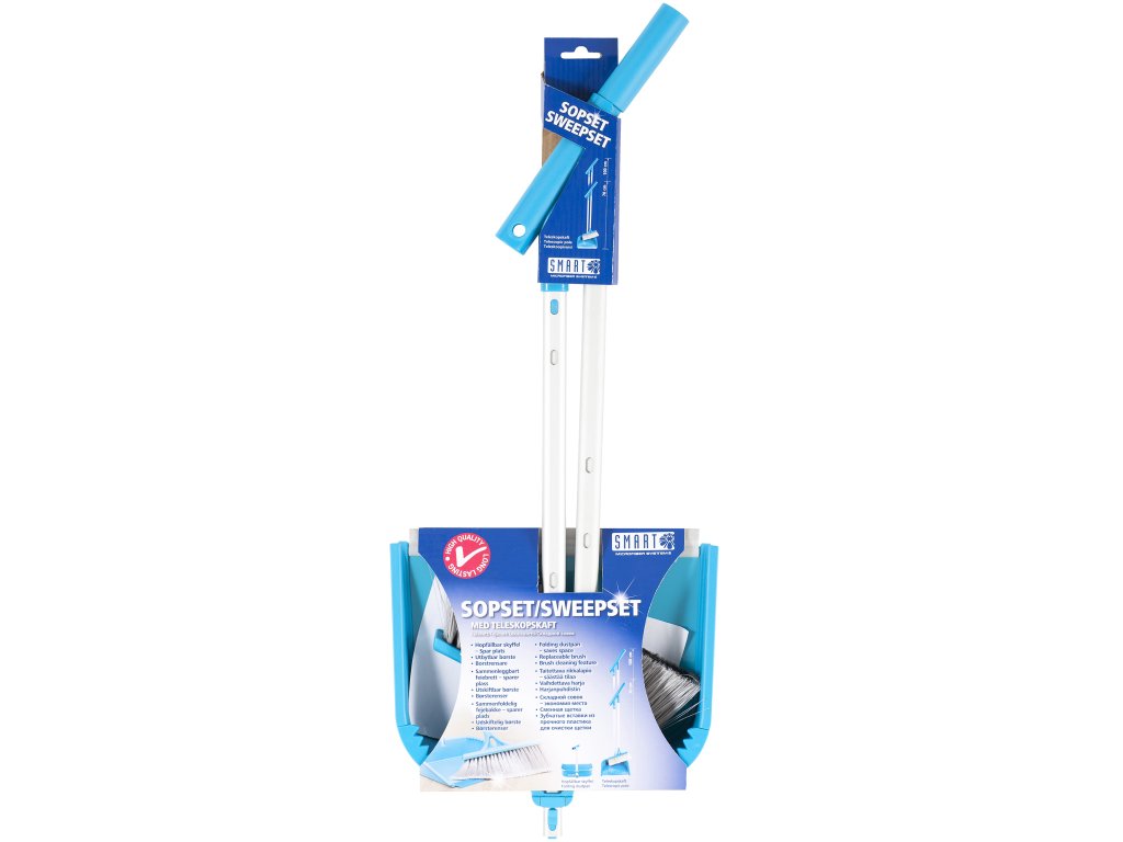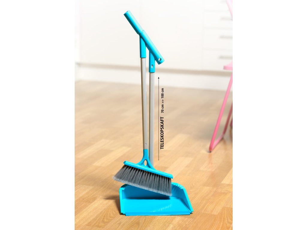 Už žádné ohýbání zad! Teleskopickou rukojeť lze nastavit na délku 70–100 cm, aby vám přesně vyhovovala. Smetáček s hustými štětinami účinně zametá prach, nečistoty i drobky. Lopatka má pružnou gumovou hranu pro perfektní kontakt s podlahou. Součástí je také funkce čištění smetáčku, která udržuje štětiny v dobrém stavu.