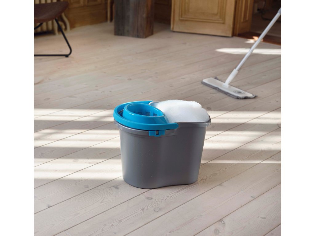 Kbelík s řadou praktických výhod. Jeho design minimalizuje rozstřikování vody. Úchop ve spodní části a přední výlevka výrazně usnadňují vylévání. Ždímač je uložen na vnitřním okraji vědra, což snižuje jeho opotřebení.