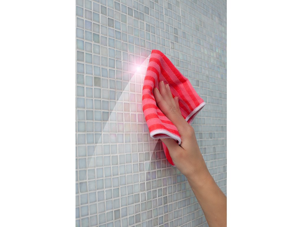 Utěrka do koupelny. Efektivně čistí a leští díky drsnějším proužkům.